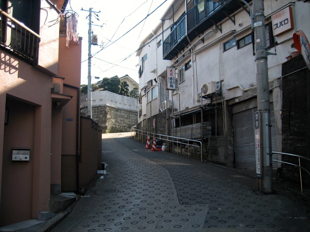 地蔵坂は、この坂の上の三叉路で合流し、ここを通って下る坂道です。