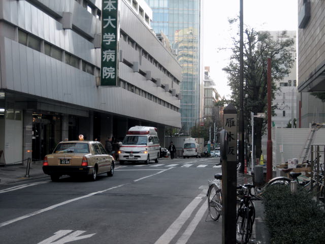 『新撰東京名所図会』には「駿河台西紅梅町と北甲賀町の間を袋町の方に行く坂を雁木坂と称す。慶応年間の江戸切絵図をみるに、今の杏雲堂病院の前あたりに「ガン木サカ」としるされたりと書かれています。