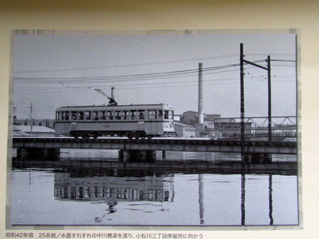 25系統/水面すれすれの中川橋梁を渡り、小松川3丁目停留所に向かう