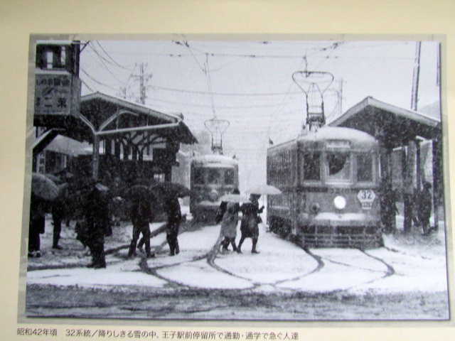 32系統/降りしきる雪の中、王子駅前停留所で通勤・通学で急ぐ人達