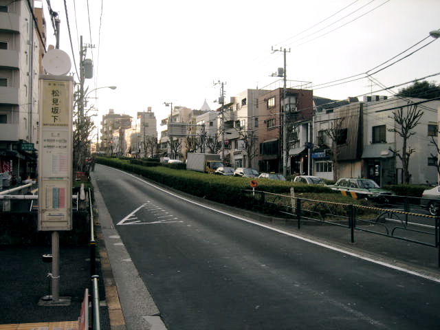 この坂から、道玄物見の松が見えたので、松見坂と呼ばれるようになったと言われる。