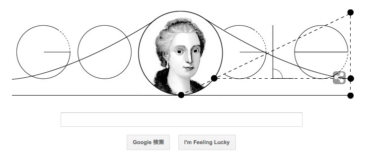 今日のGoogleロゴは、イタリアの女性数学者・哲学者のマリア・ガエターナ・アニェージ(1718〜1799)生誕296周年です。