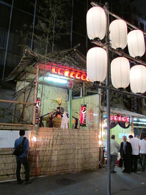 15日の渡御に向けて、町会の神輿櫓がスタンバイしています。
