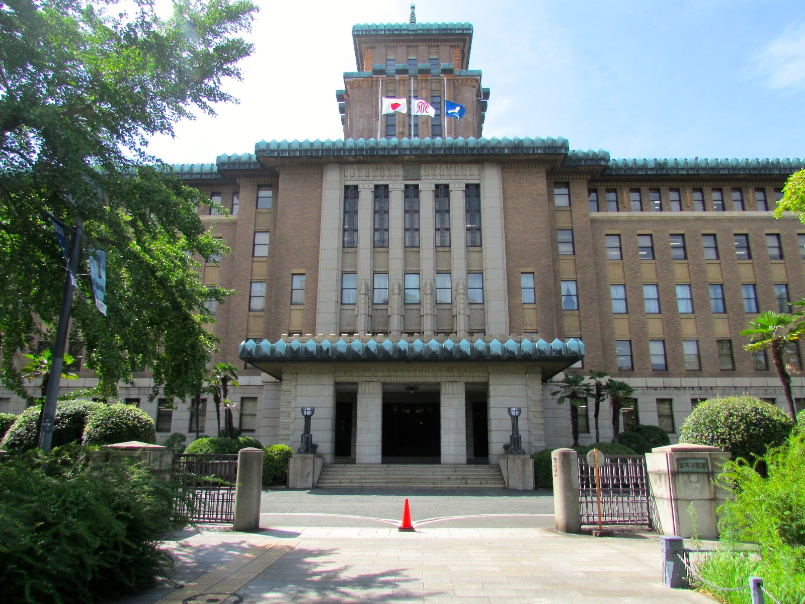 神奈川県庁本庁舎は、初代の県庁舎から数えて4代目の本庁舎です。関東大震災後の1928年(昭和3)に建てられました。知事が執務する現役の庁舎で大阪府本館に次いで2番目の古さになります。帝冠様式建築の先駆けと言われています。横浜三塔の一つキングの塔と呼ばれています。