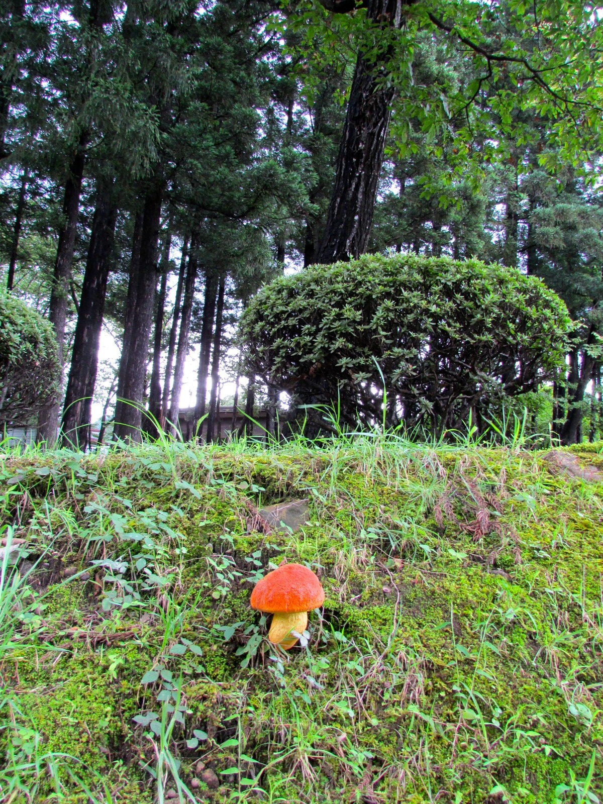 蒸溜所内は、自然が豊かで、貯蔵庫行く途中に、ドコモダケが生えていました。