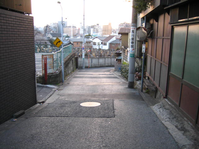 坂は『御府内備考』の文政9(1826)年の書上によれば、幅2間(約3.6メートル)ほど、長さ50間(約90メートル)高さ2丈ほどあった。