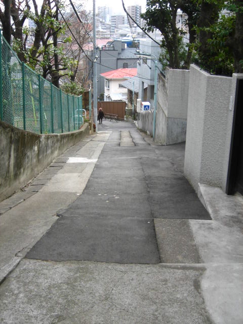 江戸時代、鳥羽藩主稲垣摂津守の下屋敷と、其の西にあった岩槻藩主大岡主膳正の下屋敷の境の野良道を、宝暦11(1761)年に新道として開いた。その道がその坂である。