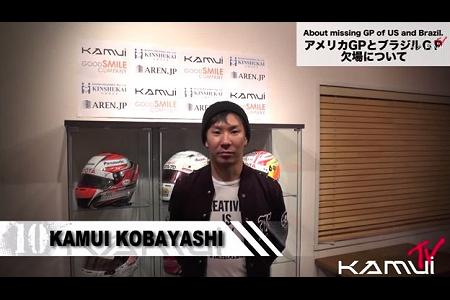 「残 念ですがチームの事情によりアメリカGPとブラジルGPに参戦できなくなりました。楽しみにしてくださっているファンのみなさまには本当に申し訳ない 気持ちでいっぱいです。今後につきましては状況の推移を見ながら、一番ベストな選択をしたいと思っています(原文ママ)」