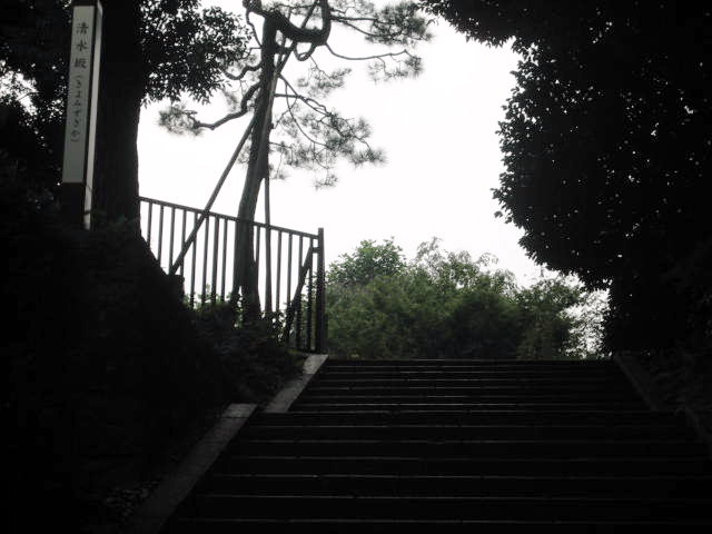 坂の上には、東叡山寛永寺清水観音堂があり、坂の名はその堂の名称にちなむ。清水観音堂は寛永8(1631)年に京都の清水寺を模し摺鉢山の上に創建され、元禄7(1694)年に現在地へ移転した。国の重要文化財に指定されている。