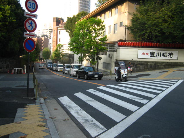 坂を登ると、青山通りに出て、左側に豊川稲荷、右側には赤坂御用邸があります。