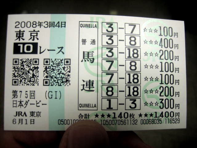 パドックを見て、1番ディープスカイの出来がすばらしいのが怖くなって、ブラッシェルとの組み合わせを抑えで買いました。
