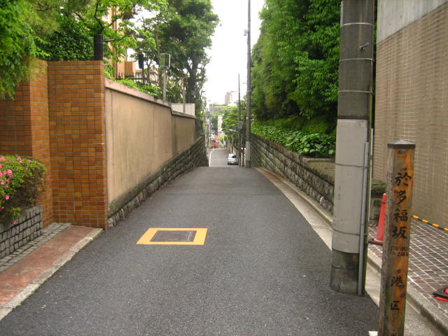 坂の傾斜が、途中でいったんゆるやかになって、また下ったので、顔の真ん中の低いお多福面のようだと名付けられた。