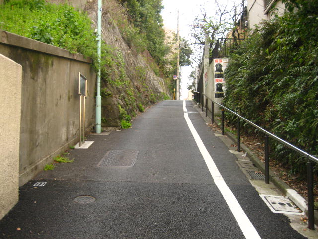 北野天神(牛天神)の北側の坂で、古くは潮見坂・蠣殻坂・鮫干坂など海に関連する坂名でも呼ばれていた。中世は、今の大曲あたりまで入江であったと考えられる。