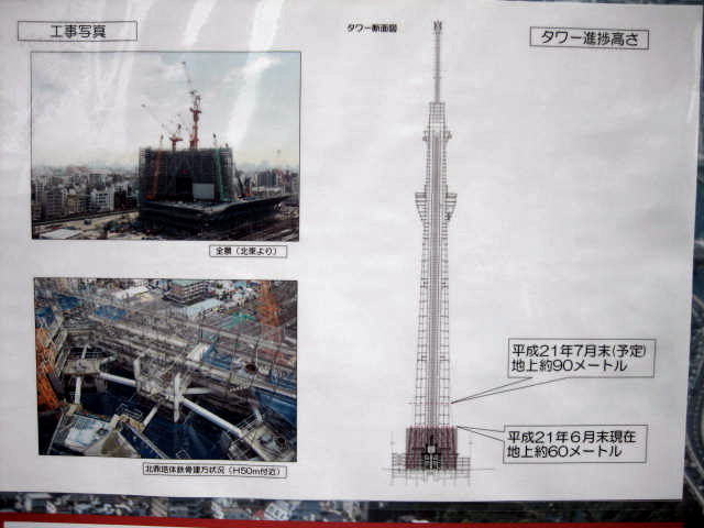 最後に、スカイツリーの進捗状況高さですが、これによると、今月末には90mの予定とあります。
