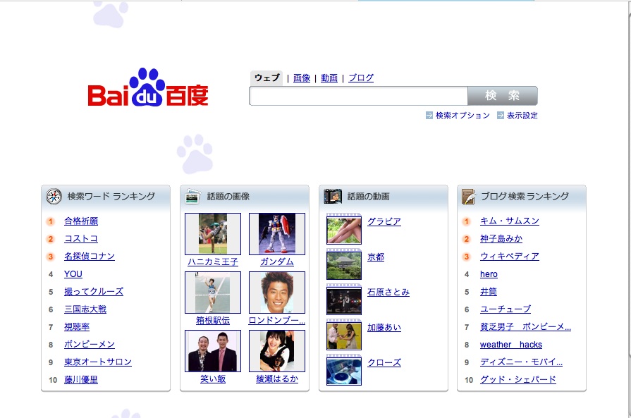 ちょっと、古い話しになりますけど23日、中国ではYahoo、Googleを抑えて、検索サイトでトップシェアを誇る百度が日本で正式にオープンしました。