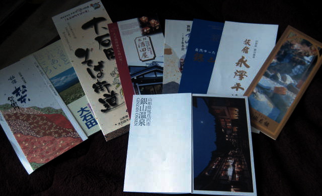 と言うことで、銀山温泉のパンフと旅館のハンプを集めてみました。