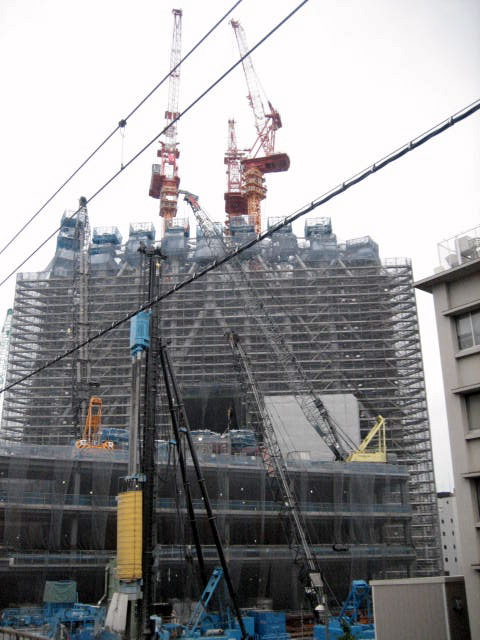 今日は、風が強いので内部の作業が中心らしく、クレーンがあまり動いていなかったように思えます。