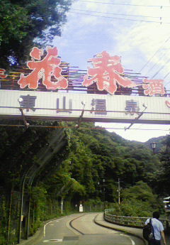 東山温泉の看板