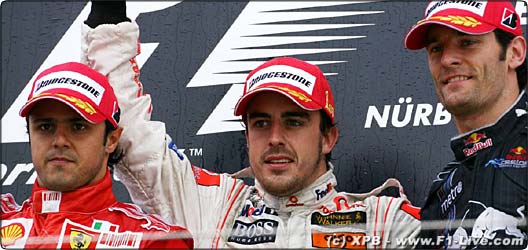 ヨーロッパGPで優勝を果たしたのは、アロンソ。2位にマッサ、3位には今季初表彰台となるマーク・ウェバー(レッドブル)が入っている。