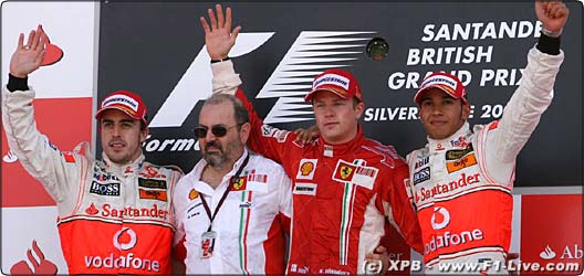 イギリスGPで優勝を果たしたのは、前戦フランスGPに引き続きライコネン。2位にアロンソ、3位には、母国GPを迎えたハミルトンだった。