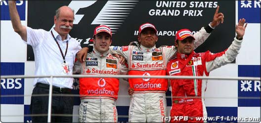 アメリカGPで優勝を果たしたのは、ルイス・ハミルトン。前戦カナダGPに続いて、2連勝を飾っている。2位にアロンソ、3位にはマッサだった。