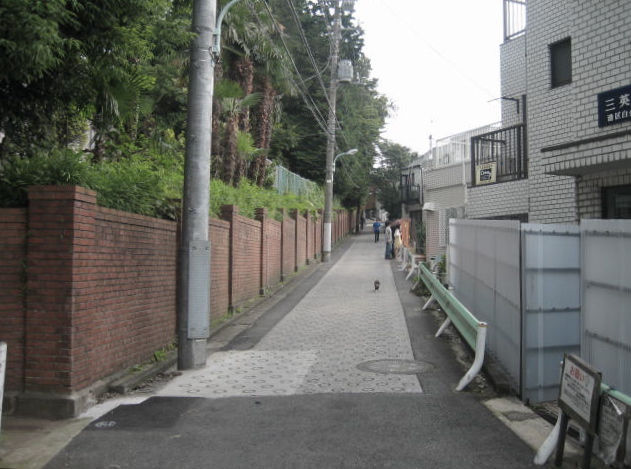 左側の赤煉瓦塀は、聖心女子学院のものです。