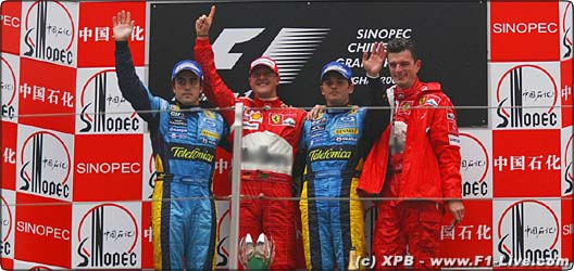 シューマッハは着実な走りで逃げ切りを決め、見事、逆転勝利。今季7勝目、通算91勝目を挙げるとともに、ドライバーズチャンピオンシップで、ついにアロンソと同点に並んだ。2人の獲得ポイントは116点だ。