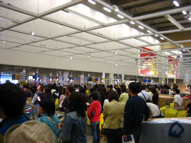 レジは集中方式。開店初日ということで、この有り様。