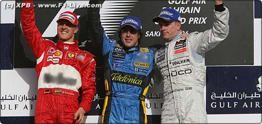 最 後まで息をつかせぬ、し烈なトップ争いは結局、アロンソに軍配が上がり、開幕戦ウイナーに決定。シューマッハは2位に甘んじたが、王者復活を予感させる戦 いぶりだった。3位はなんと、最後尾からスタートしたキミ・ライコネン(マクラーレン)。そして4位にはHonda Racing F1のバトンが入り、惜しくも表彰台を逃している。