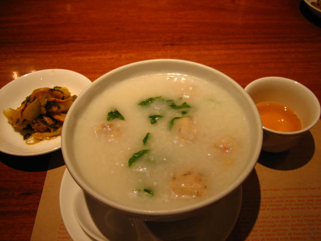 注文したのは、ランチメニューで魚団子の粥とマンゴープリン