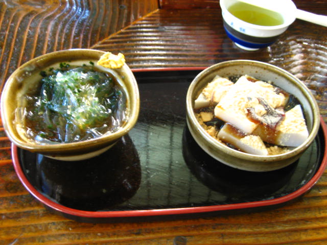 途中、小腹がすいたので久寿餅池田屋さんで、ところ天とくず餅のセットを食べました。