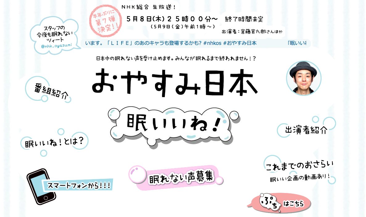 今日、家に帰ってきてテレビをつけたら、『おやすみ日本』がやっていた。