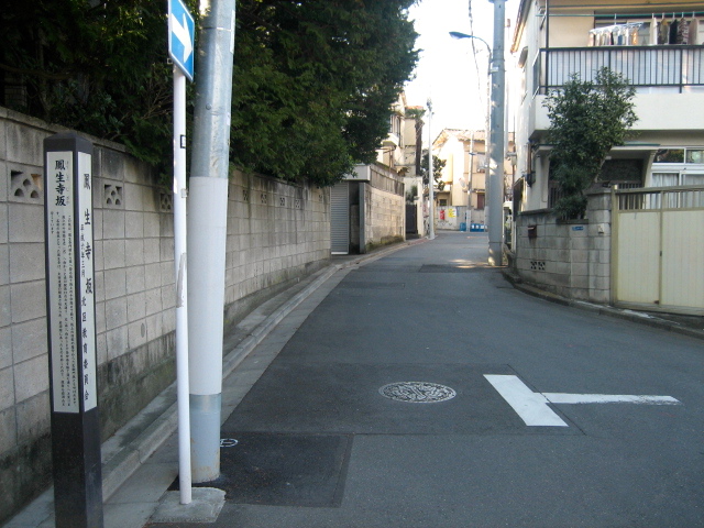 坂上の十字路を右へ向かうと赤羽駅西口の弁天通り、左へ向かうと十条仲原を経て環七通りへと至ります。名称の由来となった鳳生寺は、太田道灌の開基と伝えられ、岩渕宿にあったものを移したので、現在も岩渕山と号しています。